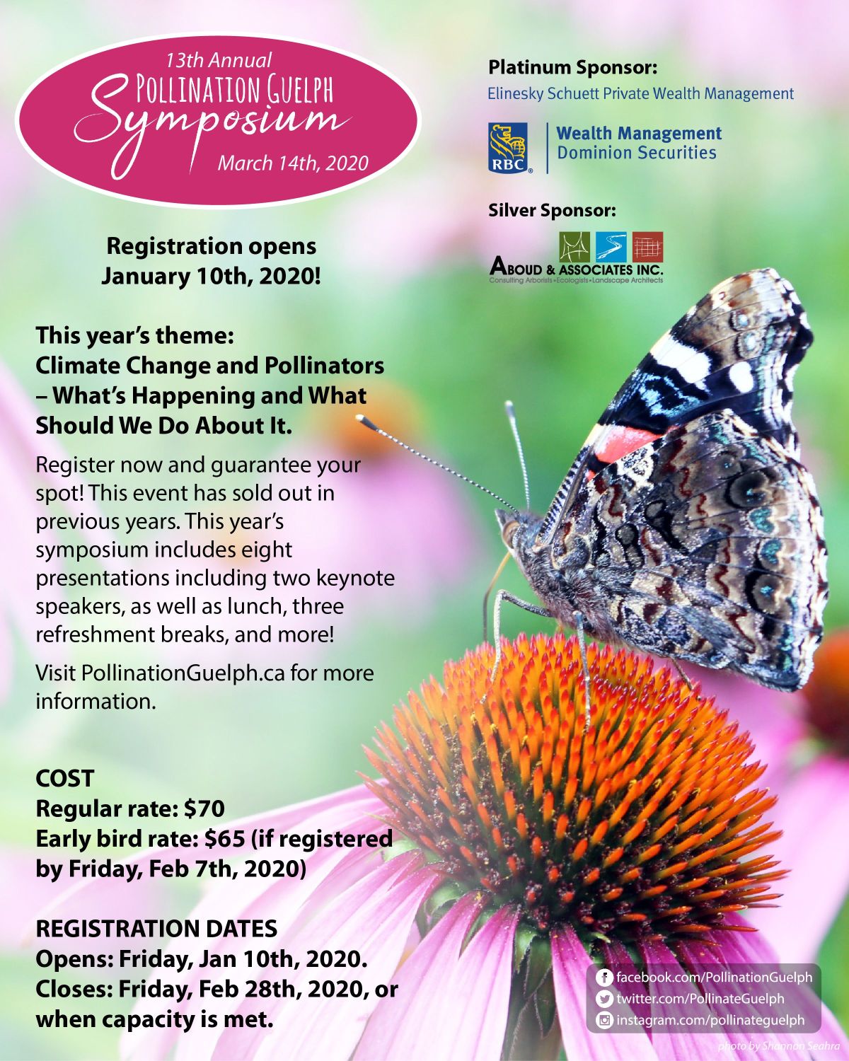 Get ready – registration opens THIS Friday Jan 10 for our 2020 Pollination Symposium, to be held Saturday March 14 in Guelph. With a highly relevant theme of #ClimateChange and #Pollinators, you won’t want to miss out. Visit pollinationguelph.ca for more information.